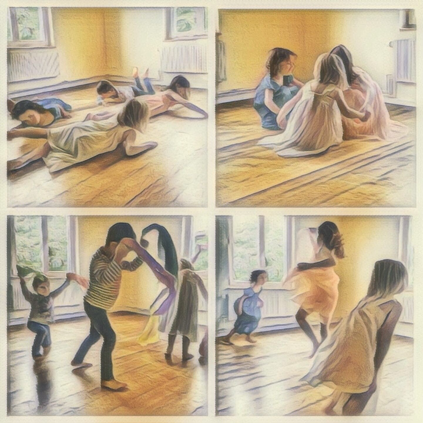 In den Tanz- & Bewegungsatelier Kursen dürfen Kinder spielerisch tanzen, bewegen und singen aus probieren. Durch Impulse, Musik und freie Bewegung entdecken sie ihren Körper, ihre Stimme und ihre Kreativität. In der Gruppe erleben Kinder Gemeinschaft, Rhythmus und Freude am Tanzen.